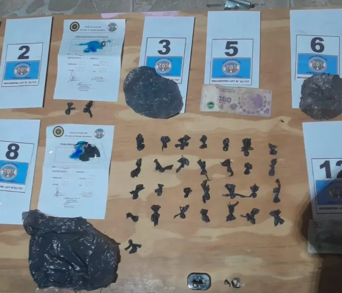 Durante la requisa, los investigadores incautaron más de 30 envoltorios de cocaína listos para su comercialización, además de 676.000 pesos argentinos, 1.200 dólares estadounidenses, cuatro teléfonos celulares y otros elementos considerados de interés para la causa.