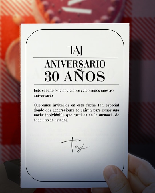 Hoy, 30 años después, Taj se prepara para una celebración especial en la que se unirán dos generaciones: los que vivieron la experiencia del Taj en sus años de oro y los más jóvenes que hoy siguen disfrutando de su música y su energía. La invitación está hecha para todos, quienes podrán ser parte de una noche única e inolvidable, llena de recuerdos y nuevas experiencias que quedarán grabadas en la memoria de cada uno.