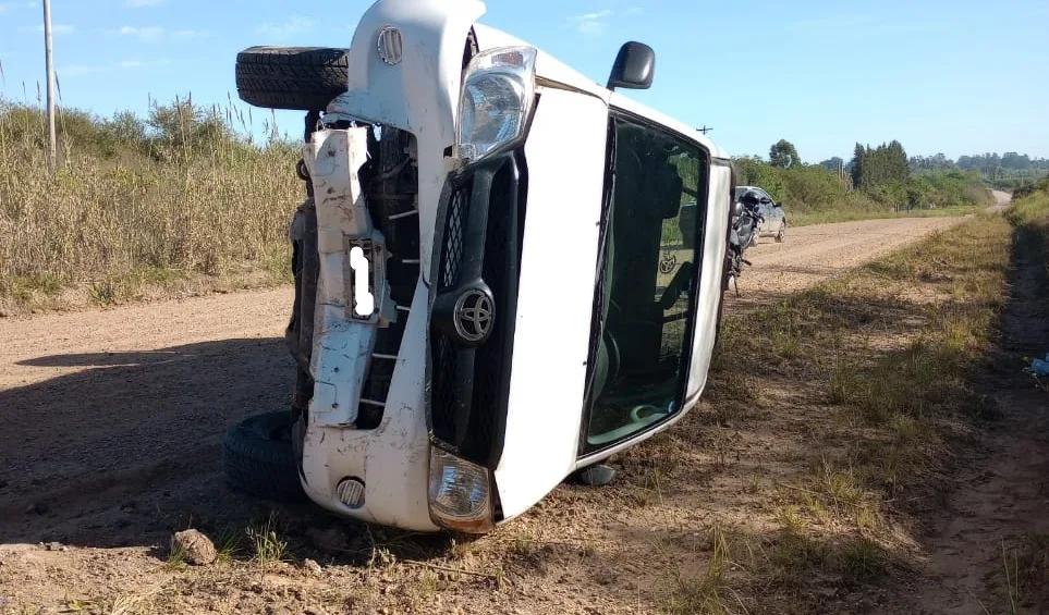 Interviniendo en el lugar personal de Comisaria Talitas, donde constata el accidente en la recta posterior a la curva del nuevo acceso a la planta de reciclaje, se encontraba una camioneta marca Toyota Hilux, color blanca, volcada de costado, la misma circulaba de Sur a Norte; siendo conducida por un ciudadano de 39 años, Empleado de mantenimiento de la Estancia María Luisa, Colonia Elia.