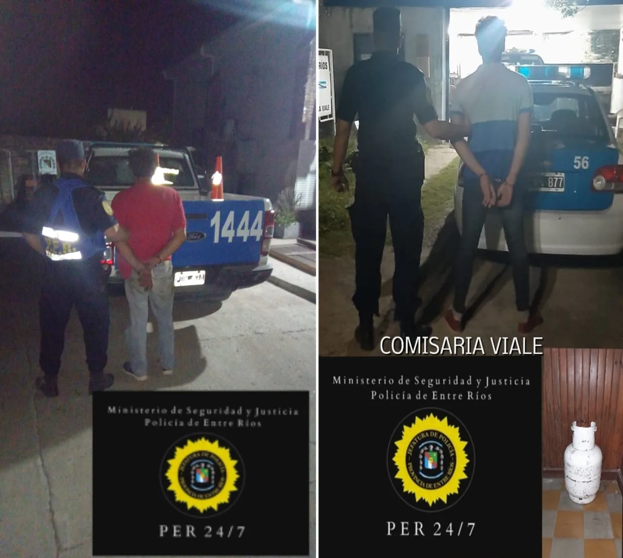 En horas de la madrugada, personal de la Comisaría Viale recibe un llamado de un posible delito, un hombre corría por calle Urquiza, con una garrafa. Un móvil policial identifica a un joven de 22 años con el elemento, ingresando a un domicilio. El hombre se resiste a la identificación y luego en el interior del vehículo rompe uno de sus cristales. Por decisión judicial es alojado en Alcaidía por el supuesto delito de Robo en Flagrancia, Resistencia a la autoridad y daño a bienes del estado.