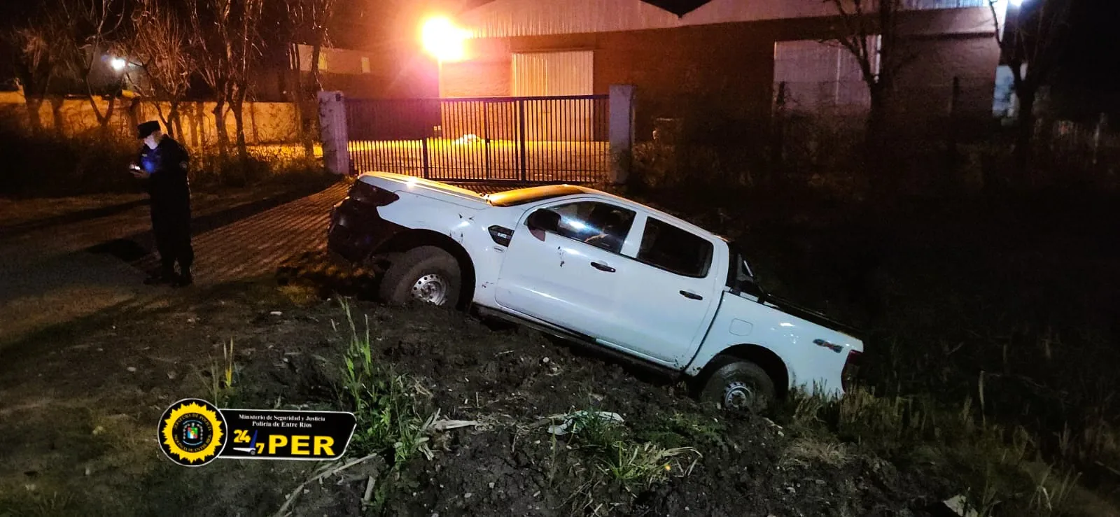 En la noche de ayer, alrededor de las 20:00 horas, personal de la Jefatura Departamental de la región acudió a un accidente ocurrido en la Ruta 18, kilómetro 205, cerca del acceso a San Salvador y a pocos metros de la calle Raúl Alfonsín. En el lugar, se encontró una camioneta Ford Ranger que había terminado dentro de un zanjón con el conductor, un hombre mayor de edad, en su interior.