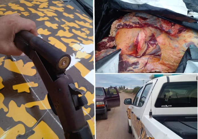 El suceso tuvo lugar alrededor de las 19:45 en la intersección de la Ruta Provincial N° 32 y un camino vecinal del ejido de Seguí, donde se detuvo una camioneta Ford F100 ocupada por dos individuos residentes en Seguí. Durante la inspección del vehículo y sus ocupantes, se descubrió la presencia de un arma de fuego sin la documentación requerida, así como también la presencia de carne vacuna faenada, destinada claramente a la comercialización ilegal.