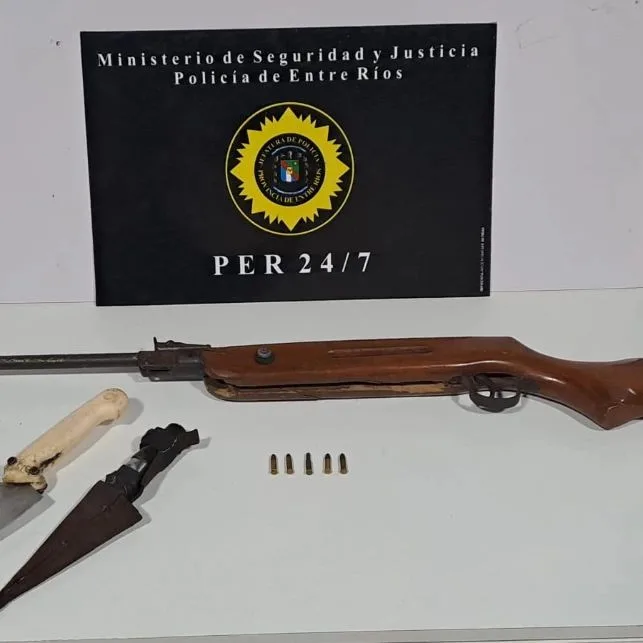 Al llegar al lugar, los efectivos policiales identificaron a los cuatro individuos y secuestraron un rifle de aire comprimido modificado y tres cuchillos.