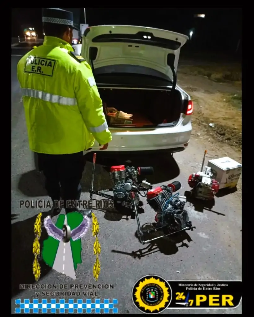 Efectivos de Caminera Paso Telégrafo, siguiendo las órdenes del Fiscal de turno, Dr. Barbiza, procedieron al secuestro de tres motores de motocicletas. Uno de los motores tenía un pedido de secuestro desde 2014, mientras que los otros dos presentaban adulteraciones en la numeración de la mesada. Estos motores estaban siendo transportados en un automóvil Volkswagen Vento, conducido por un hombre residente en San Luis del Palmar, Corrientes.