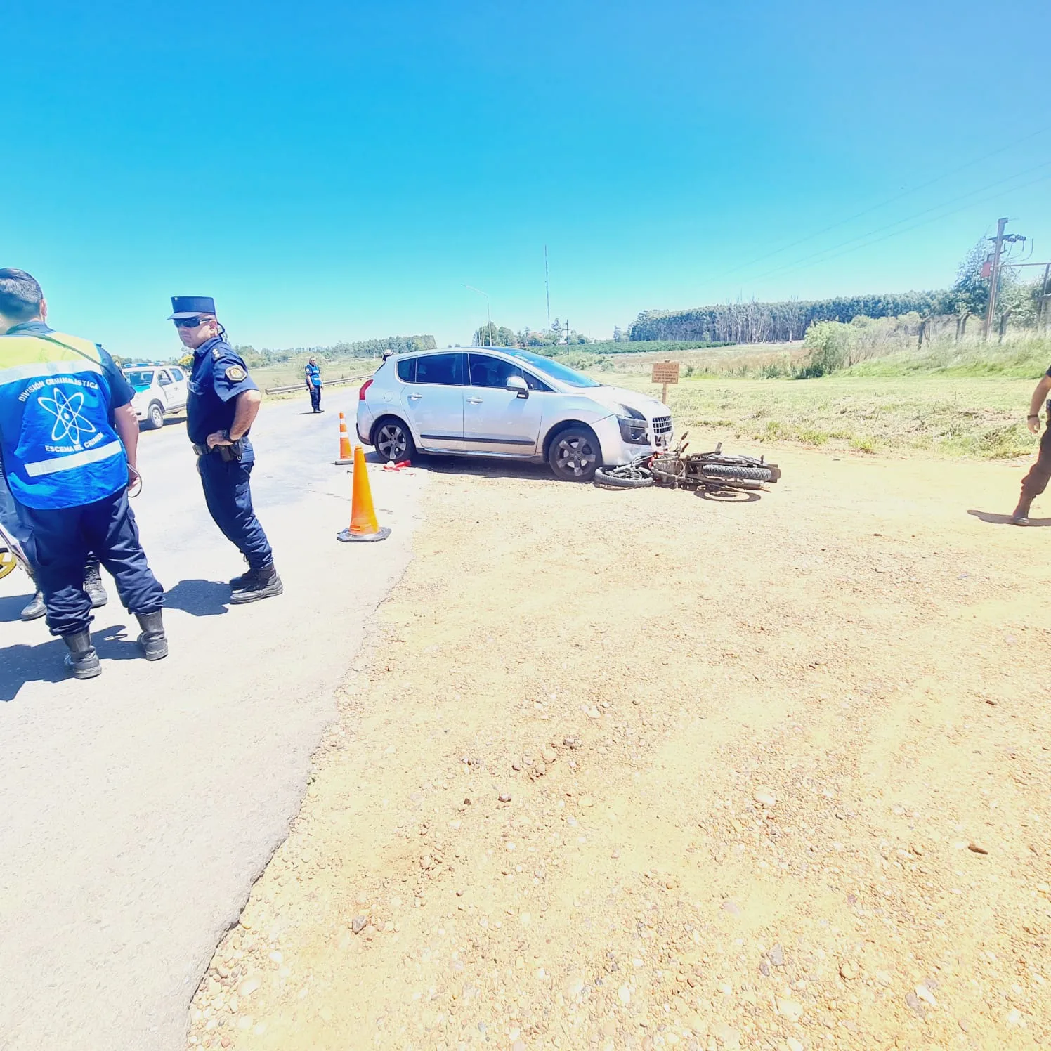 En el medio día de hoy personal de Comisaria 23 suburbios, intervienen en el acceso a Federacion, sobre Ruta Provincial 44 altura Camino Vecinal Santa Catalina; lugar donde se produjo un accidente de tránsito entre un vehículo Marca Peugeot Modelo 308, en el cual viajaban una familia oriunda de Ciudad Autónoma en condición de turistas, por lo que transitando por dicha Ruta de Oeste a Este y es entonces que el GPS le indica el giro hacia el camino Vecinal que conduce a Santa Catalina según su destino, y en esa intersección impacta de improviso y de frente con una moto marca Motomel 200 cc; a raíz del impacto el conductor de la moto, un ciudadano de esta ciudad mayor de edad, sufriendo fractura expuesta de pierna izquierda, y debió ser trasladado para su atención primaria al Nosocomio local y luego derivado al Hospital Masvernat de Concordia.