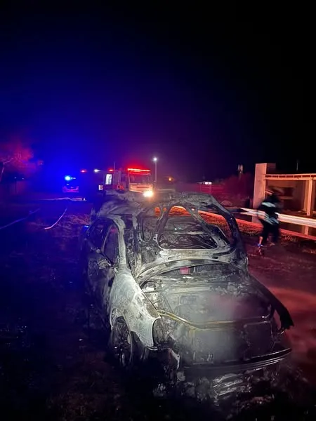 Siendo las 1,50 hs de la madrugada de este viernes cuando el silencio de la noche se vio interrumpido por un llamado de emergencia. En calle Vasallo, sin número, en las inmediaciones del camino a Puerto Ruiz, un automóvil ardía en llamas. La situación exigía una respuesta inmediata.