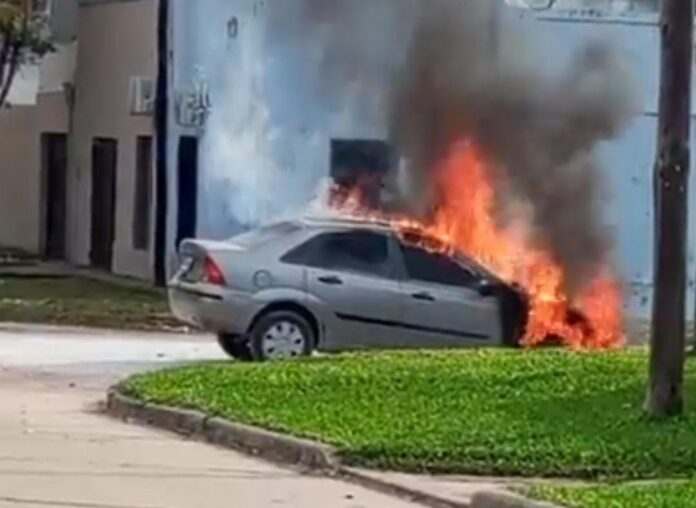 Al llegar al sitio del incidente, los bomberos constataron que se trataba de un automóvil envuelto en llamas, con el fuego extendiéndose rápidamente por todo el vehículo. Sin perder tiempo, se estableció un perímetro de seguridad para resguardar a los transeúntes y vehículos cercanos, y se iniciaron las labores para contener y extinguir el incendio.