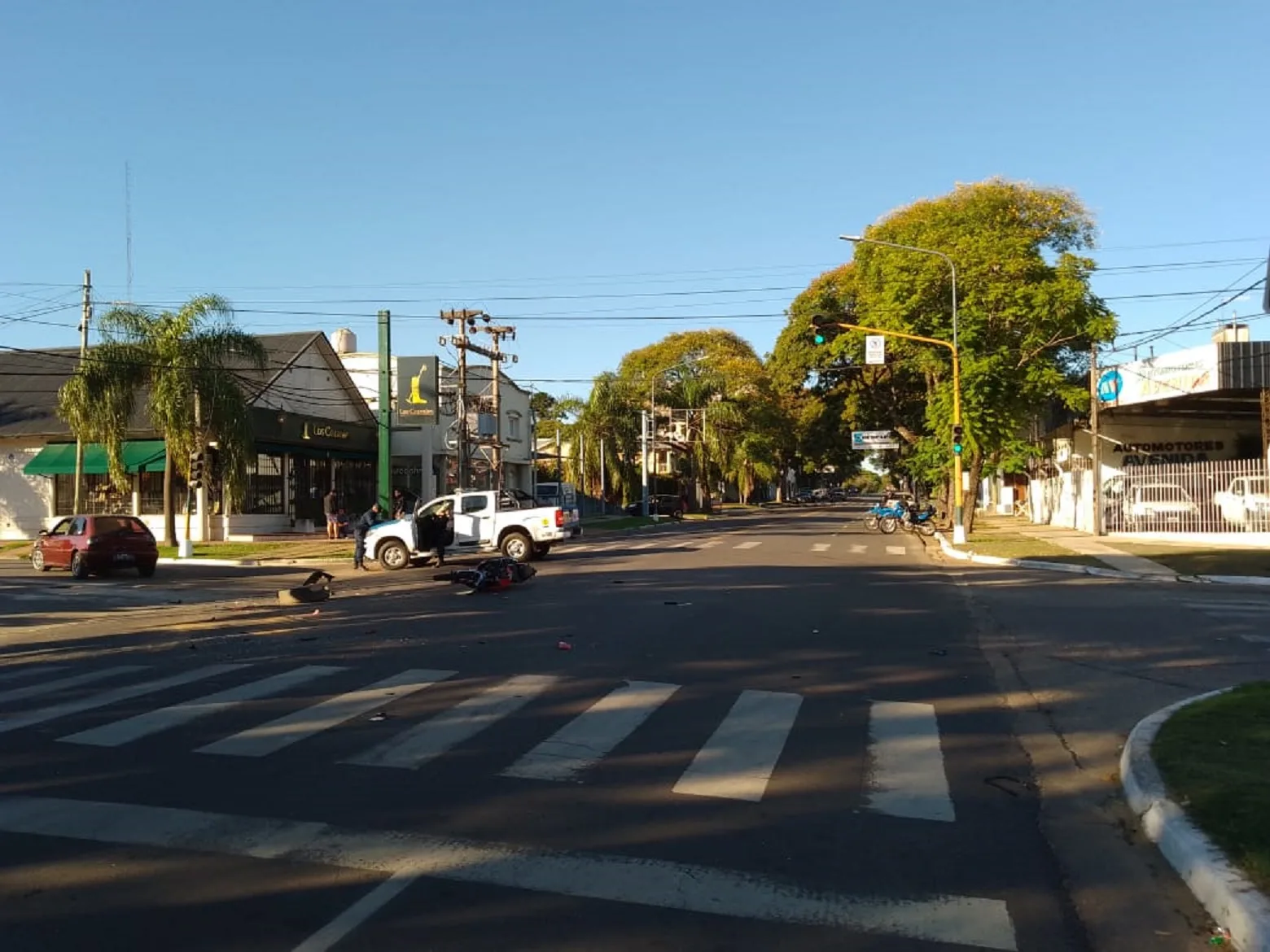 Minutos antes de las 09hs de esta mañana y por razones que se tratan de establecer, efectivos Policiales de Comisaría Tercera se constituyeron en calle Eva Perón y Rocamora, donde se produjo un accidente de tránsito; en el que se vieron involucrados un auto marca Volkswagen Gol que transitaba de Norte – Sur por Eva Perón, conducido por un hombre de 32 años y quien posiblemente había realizado una mala maniobra (giro en “U”) con el vehículo, asimismo en la otra parte, una Motocicleta marca Benelli de 180cc, conducida por un masculino de 40 años que transitaba en el mismo sentido por la misma arteria.