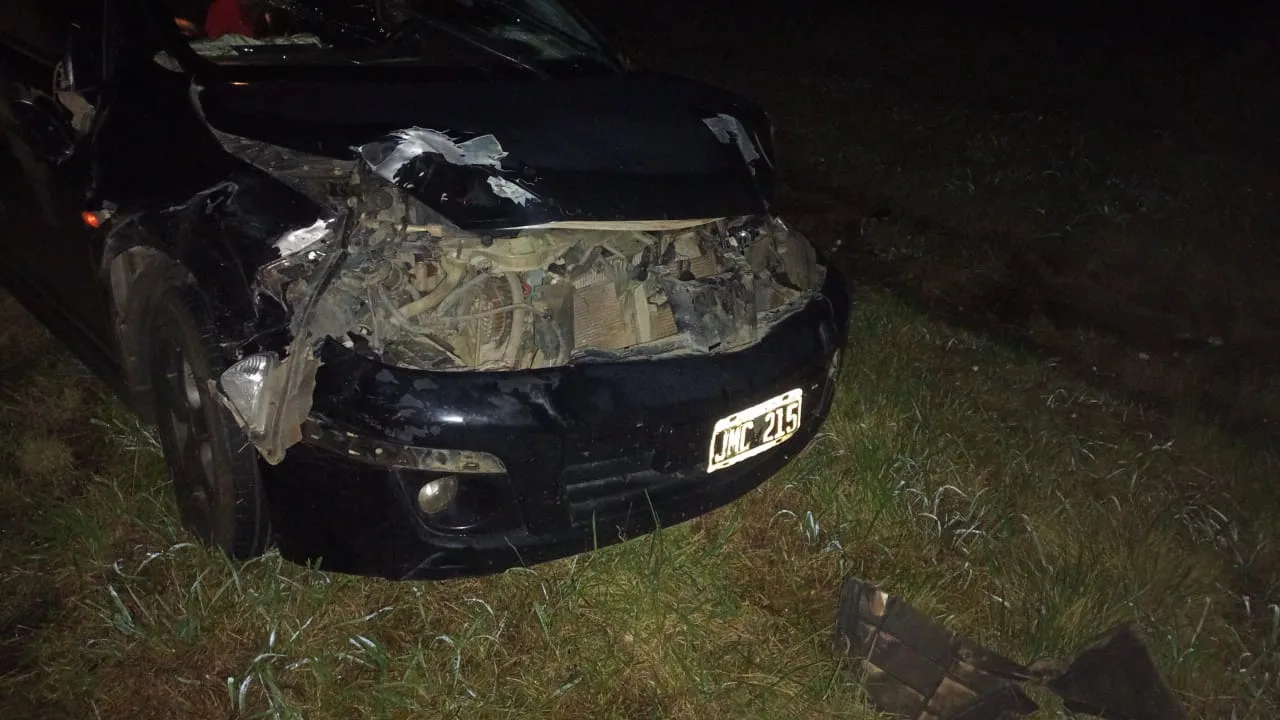 Consultado al conductor, menciona, que al encontrarse circulando a la altura del km 140, transitando por el sentido de circulación de Norte a Sur, se le atraviesan dos animales vacunos, impactando con ambos, pudiendo dejar el vehículo estacionado sobre la banquina, quedando los animales tirados a 200 mts del lugar, sobre la banquina.