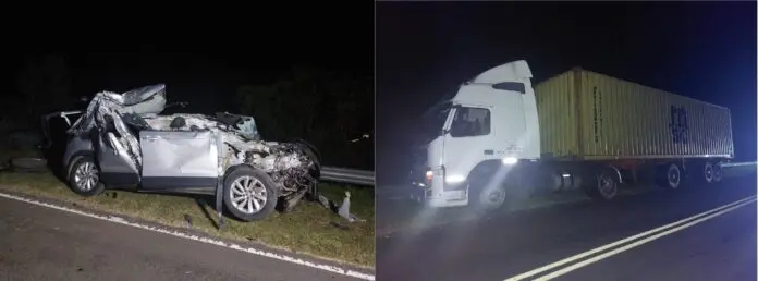 En la noche de este miércoles, se produjo una colisión entre dos vehículos, uno de ellos un automóvil marca Volkswagen T-Cruss, conducido por un señor de 74 años con domicilio en la localidad de Chajarí, este se dirigía desde Esquina Corrientes, hacia Chajarí, mientras que el camión marca Volvo de una empresa de Transporte y Logística de Esquina Corrientes, conducido por un ciudadano de 37 años de edad, con domicilio en la misma firma de transporte y se dirigía a Rosario – Santa Fe, por razones que se trata de establecer el automóvil impacta de atrás al camión.