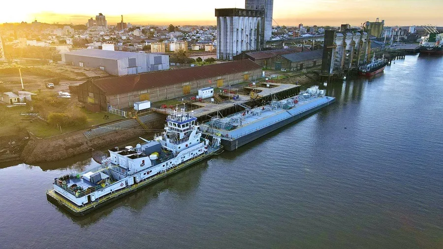 En horas de la mañana, había hecho su ingreso la barcaza tanque CNH03 empujada por el remolcador Valentina H. En este último caso, el convoy arribó al puerto uruguayense con 3.8 millones de litros de gasoil destinados a la planta distribuidora que la empresa YPF tiene en la zona portuaria.