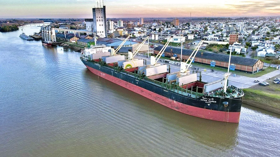 Al finalizar la actual operación, el buque se dirigirá al puerto de Ibicuy, donde completará sus bodegas con unas 14.000 toneladas adicionales de la misma carga.