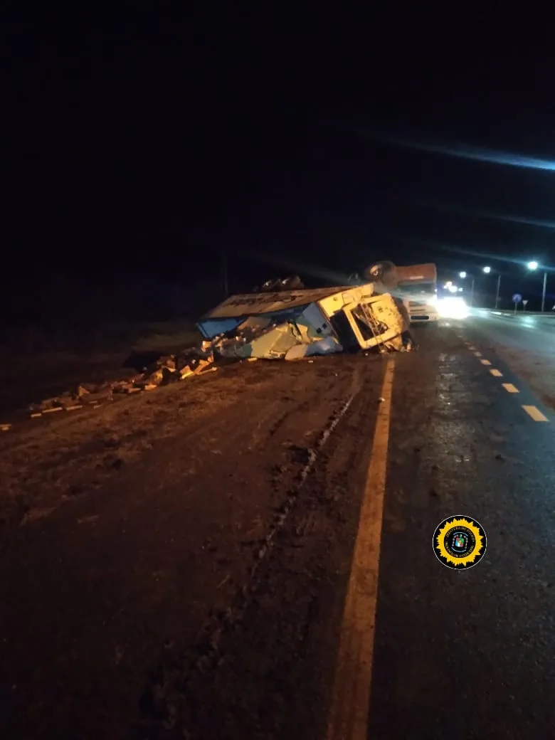 Según el testimonio del conductor, al pisar la banquina con el acoplado —marca Lambert— perdió el control del mismo, lo que provocó su vuelco sobre la banquina. Afortunadamente, el camión en sí no volcó y el acoplado quedó fuera del carril, sin afectar la normal circulación vehicular.
