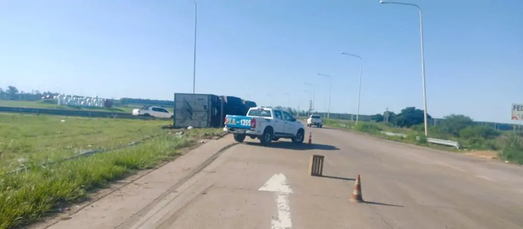 En el día de hoy, alrededor de las 16hs aproximadamente, uniformados toman conocimiento del vuelco de un camión en cercanías al acceso a la ciudad de Federación.