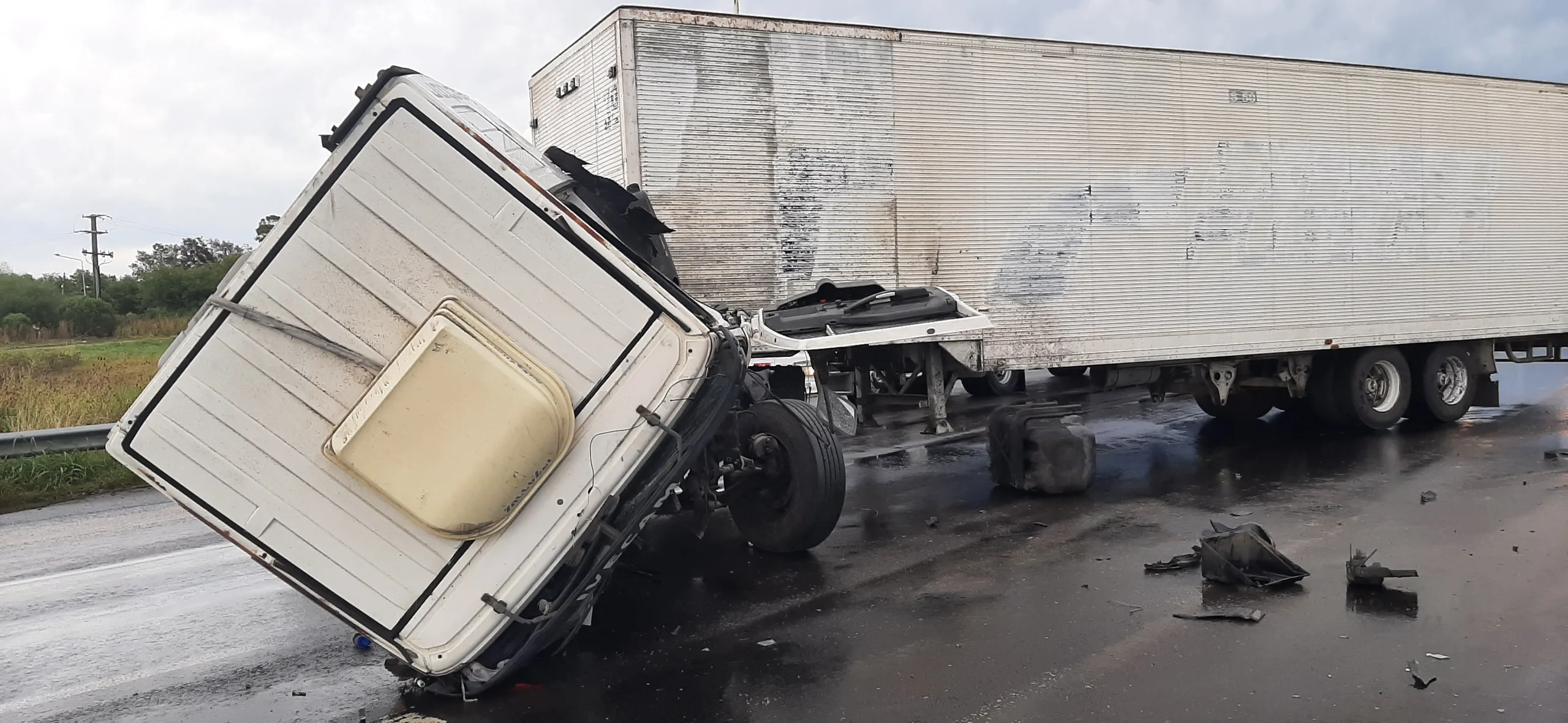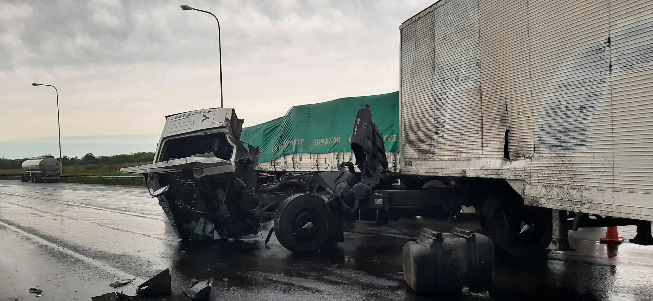 Por datos recolectados por este medio en el lugar, el camión se dirigía de Norte – Sur, por un reventón en unos de sus ruedas, no pudo controlarlo y la abundante agua en la ruta, choca contra el guardarraíl y volcando su cabina