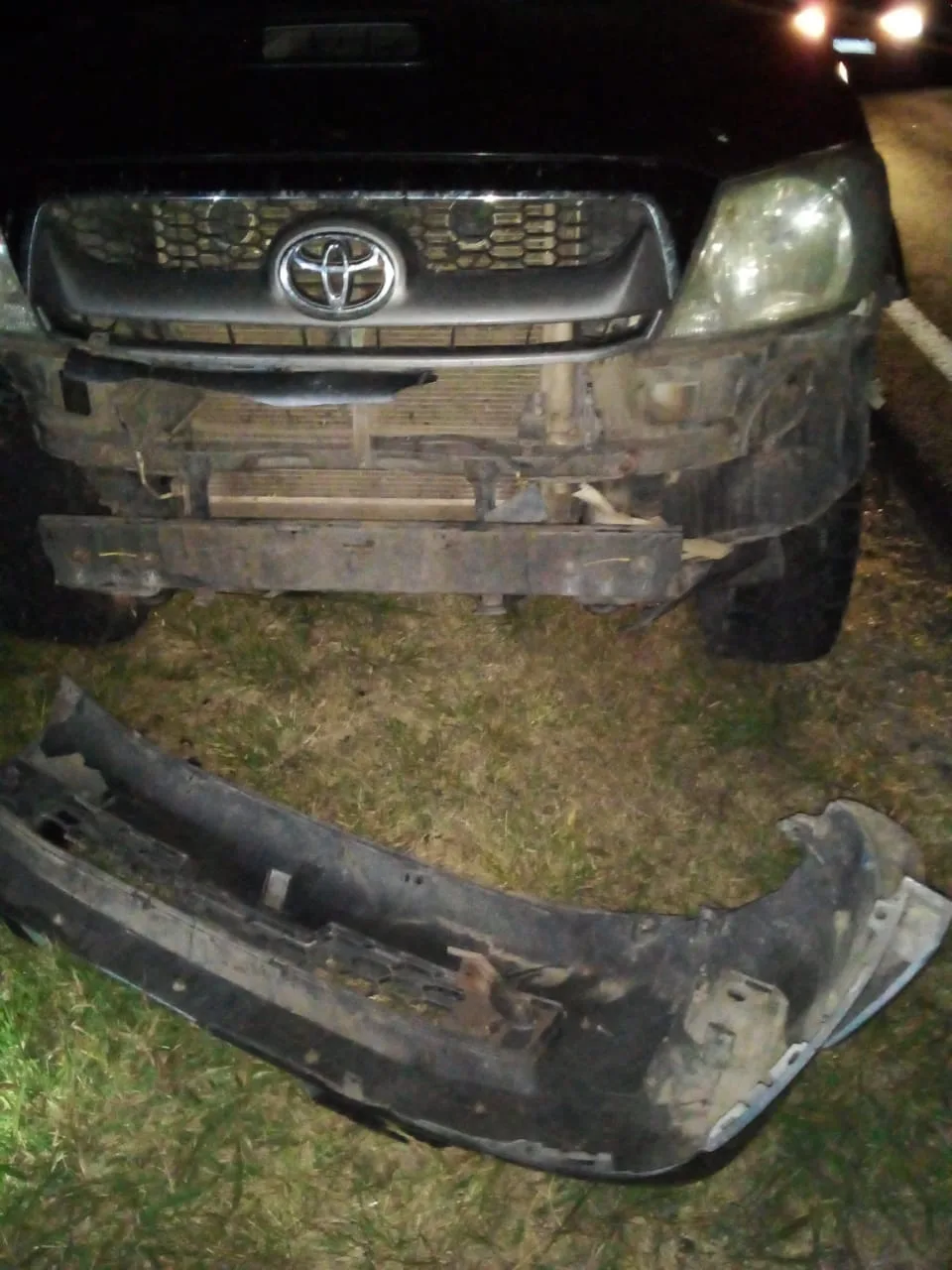 Alrededor de las 22,15 hs, personal policial toma conocimiento de un accidente vial, ocurrido en Ruta Nacional 127, a la altura del Km 132, donde una camioneta marca TOYOTA HILUX 4×4, conducida por un ciudadano de 47 años de edad, domiciliado en la localidad de Hasenkam, acompañado de un masculino de 20 años de edad, oriundo de Alcaraz Dpto. La Paz, colisiona con un animal vacuno (ternero) que cruzaba la ruta, a raíz del impacto los ocupantes del rodado no padecen ningún tipo de lesiones.