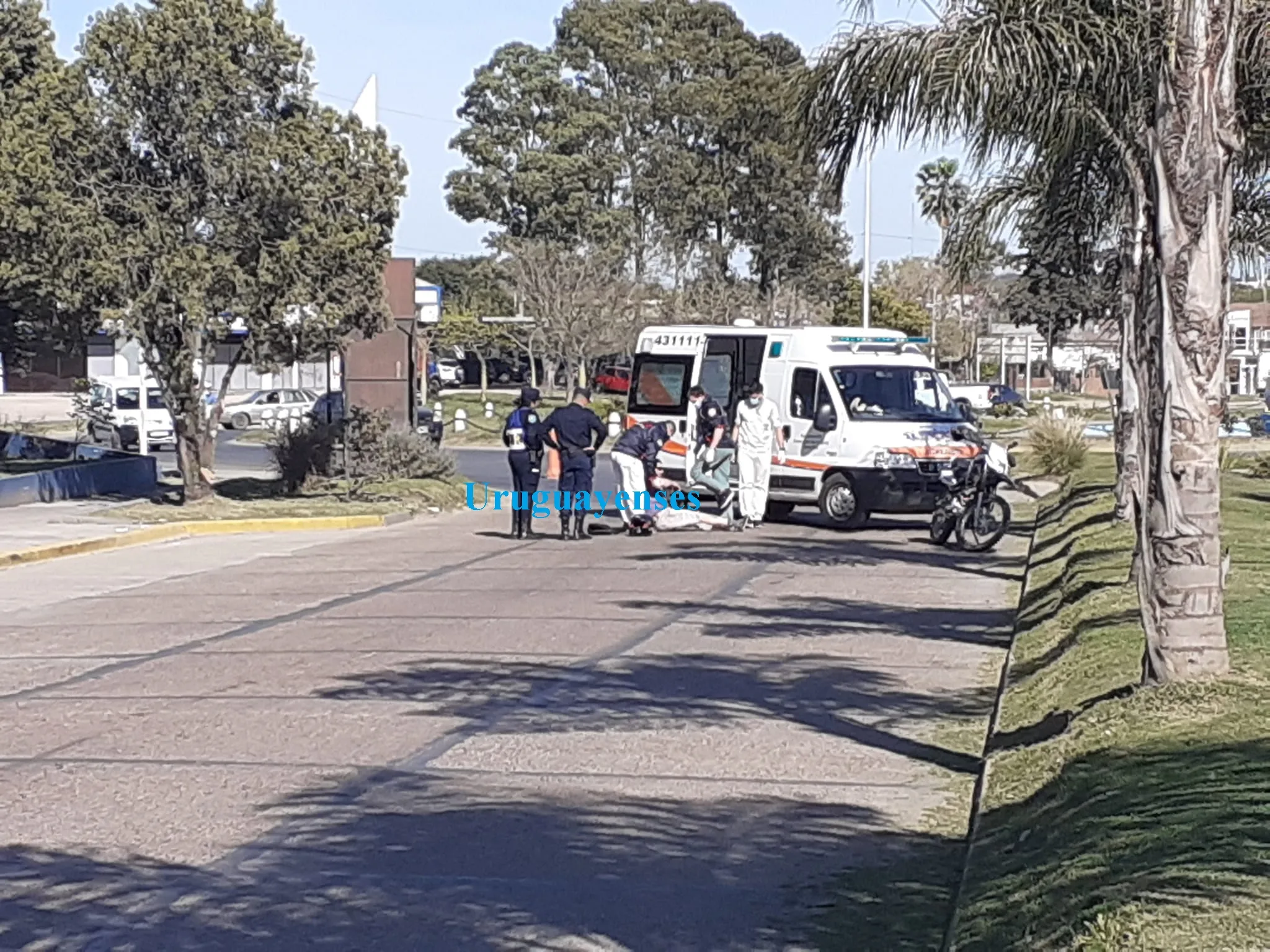 Galeria de Imágenes: En la mañana de hoy, cercanas a las 10 hs, un motociclista pierde el control y cayo solo, frente a Comisaria Segunda, inmediatamente fue auxiliado por personal policial y servicio de emergencia, donde fue trasladado al Hospital Justo José de Urquiza