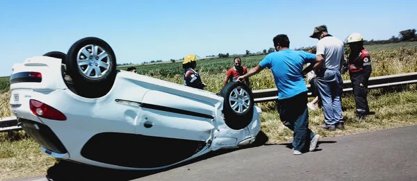 Por causas que se tratan de establecer, un auto Marca Peugeot 207 que transitaba por la mencionada ruta de Gualeguaychú con dirección a Urdinarrain, volcó en plena recta, quedando las ruedas mirando el cielo. No hay información oficial pero un tractor con implementos agrícola habría provocado la maniobra brusca del conductor.