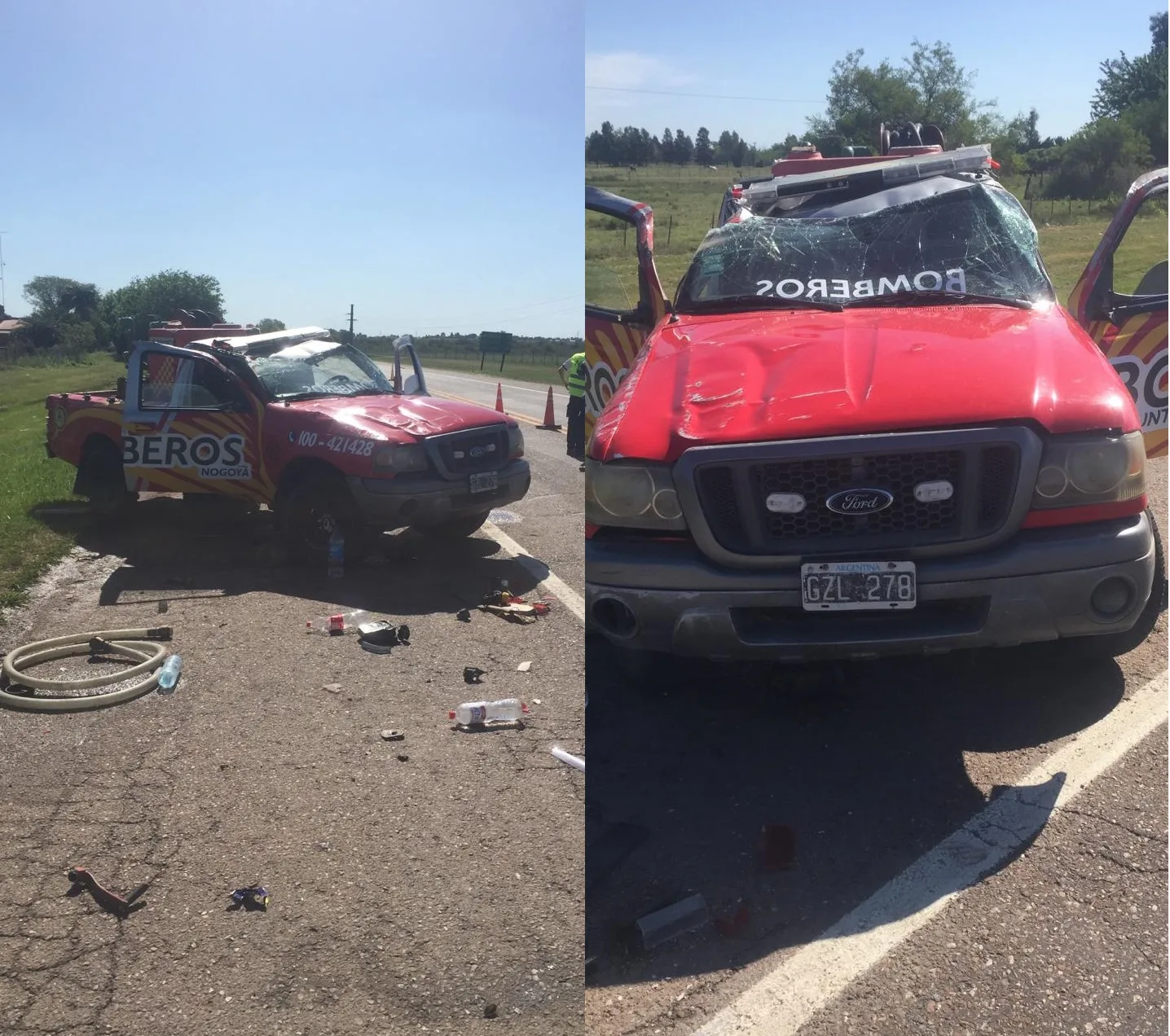 Comisaria Villa 3 de Febrero interviene en un siniestro vial ocurrido en Ruta Nacional Nº 12 y calle Mitre, lugar donde se produjo el vuelco de un vehículo de Bomberos Voluntarios de esta ciudad, siendo camioneta marca Ford modelo Ranger, conducida por ciudadano de 52 años de edad acompañado de femenina de 21 años de edad, los que se dirigían a Don Cristóbal, llevando un tanque hacia esa localidad, por causa que se tratan de establecer, el vehículo comenzó a zigzaguear, desestabilizándose produciéndose el vuelco del mismo. Ambas personas fueron trasladadas por personal de Emergencias Médicas al Hospital San Blas, examinados por el médico de policía en turno, resultando con lesiones de carácter leves. Intervino División Criminalística y personal del Puesto Caminero Nogoyá dependiente de la Dirección de Prevención y Seguridad Vial y Tránsito Municipal.
