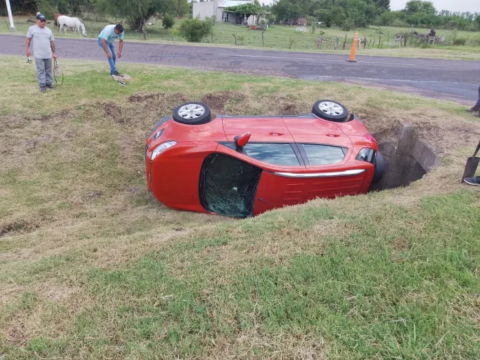 Este martes 11 de febrero, alrededor de las 8 de la mañana, un vehículo Eco Sport terminó volcado en una zanja ubicada frente a las «letras Rosario del Tala», sobre el Acceso Violeta Capurro y la Ruta Provincial N° 39, en nuestra ciudad. Según testigos ocasionales, el accidente se produjo debido a una mala maniobra que hizo que el vehículo perdiera el control y terminara volcando sobre un costado.