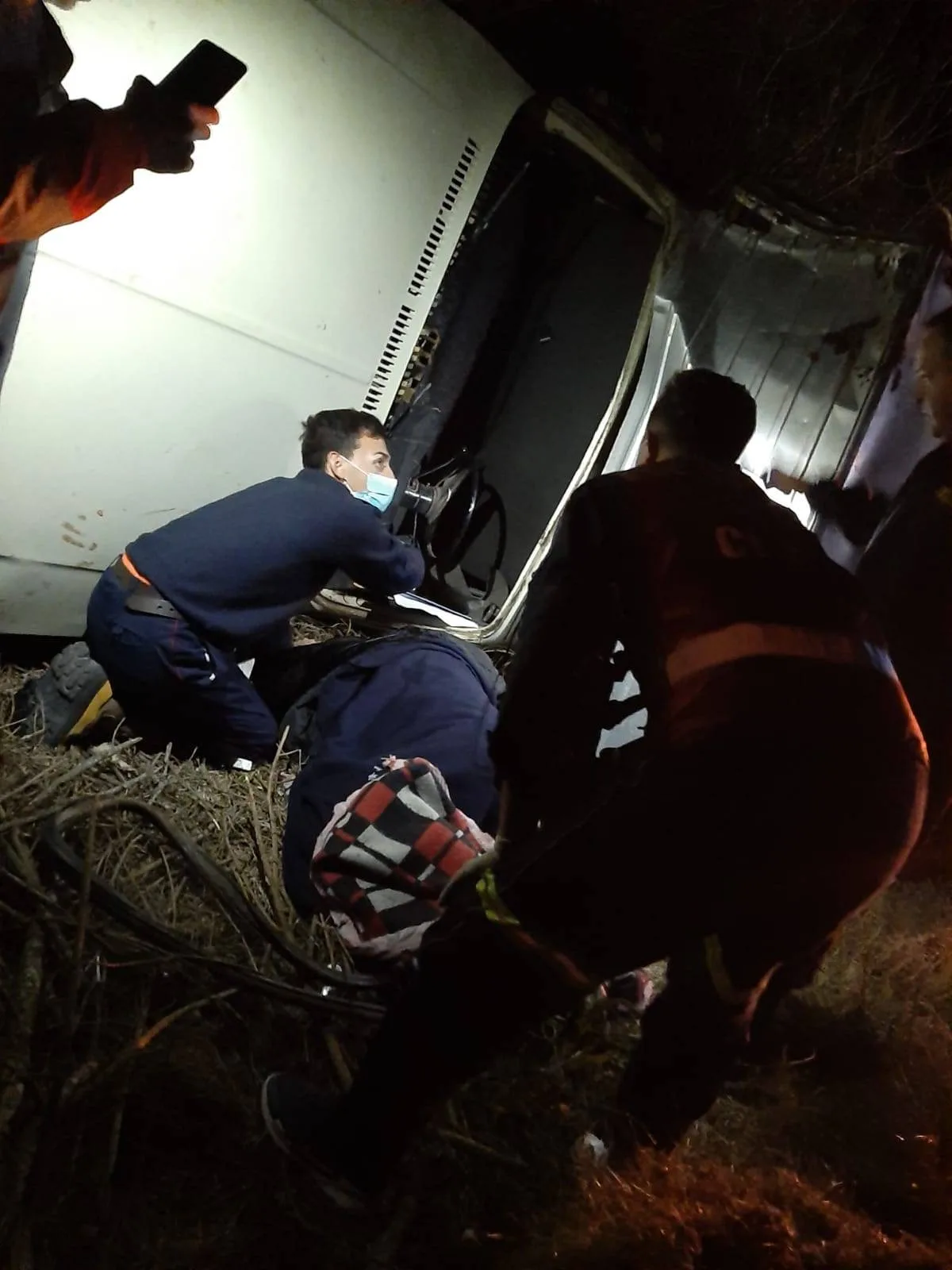 se prosigue viaje siendo las 21:23 hs aprox. en Ruta 11 km 154 se encuentran con otro siniestro vial un vuelco en cercanías de estación los Cerros, curva del puente de Arroyo Nogoyá, donde sobre el zanjón, camioneta marca Chevrolet modelo C10, conducida por masculino, 43 años, domiciliado en Crespo Entre Ríos y acompañado por femenina, 52 años, los asistimos hasta la llegada de la Ambulancia masculino se encuentra con golpes estando de pie y consciente al momento de la entrevista, en tanto su pareja se encuentra lesionada . Se trabajo con personal de Comisaría Los Cerros Dptal. Victoria, Comisaría Sexto distrito.