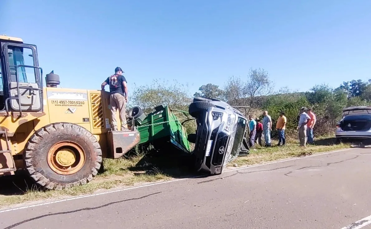 Según los informes preliminares, durante el trayecto, los animales se habrían movido dentro del tráiler, lo que desequilibró el acoplado y provocó el vuelco de la camioneta al costado de la cinta asfáltica. Afortunadamente, el conductor resultó ileso en el accidente, y solo se registraron daños materiales en los vehículos involucrados.