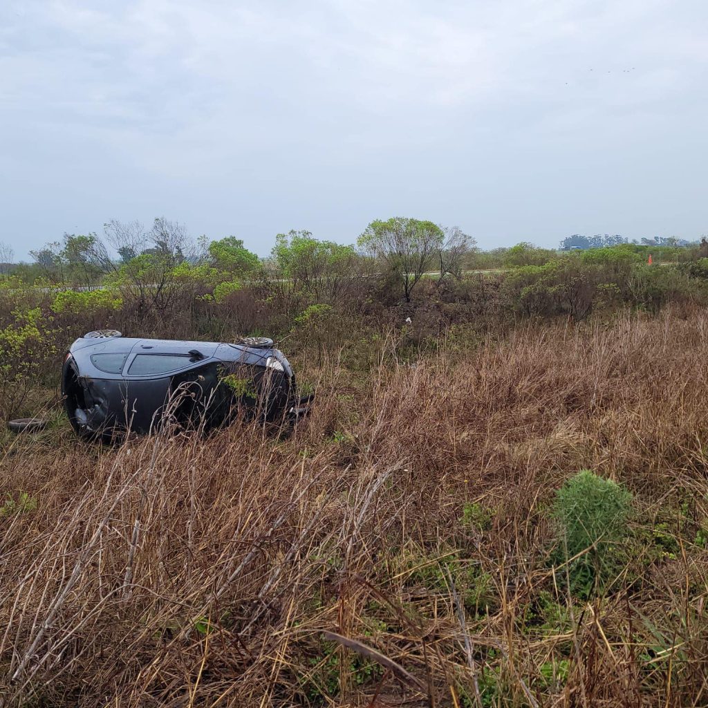 Una dotación de Bomberos de Basavilbaso fue la que se encargó de volver al auto sobre sus ruedas y ponerlo en la banquina para que fuera retirado por un remolque.