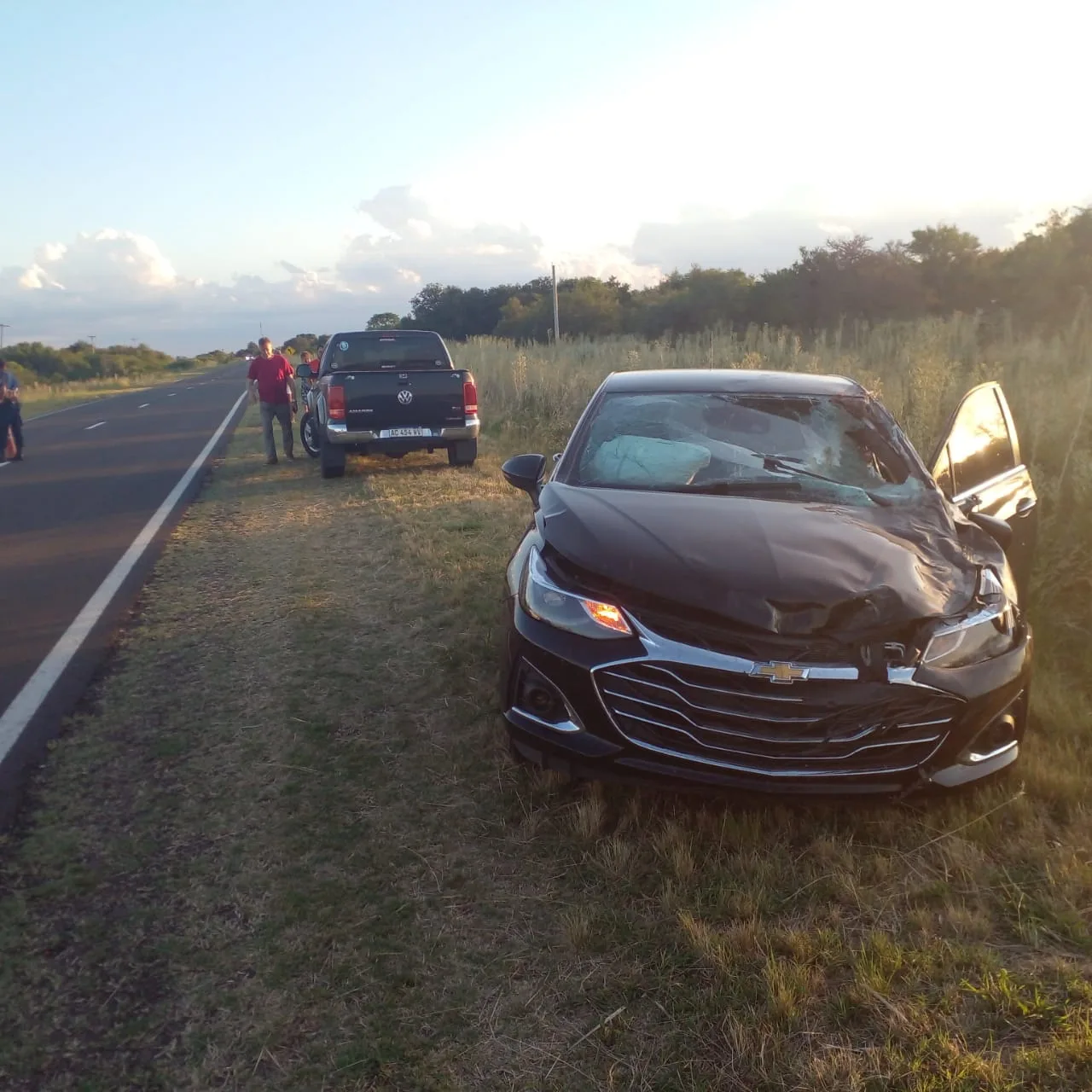 Personal de Comisaria de Colonia Avigdor intervine en siniestro vial sobre Ruta Provincial N°6 km 38,5 donde por razones que se trata de establecer un vehículo marca Chevrolet modelo Cruze color negro, conducido por un masculino de 70 años de edad, domiciliado en la Ciudad de La Paz acompañado por vehículo su esposa de 67 años de edad, el rodado colisiona con dos equinos sueltos los cuales se encuentran sin vida. En cuanto a los ocupantes del vehículo se encuentran con lesiones leves, salvo complicación. Se dio intervención a la Brigada de Prevención de Delitos Rurales (Bovril) y se aguarda llegada de la ambulancia para examinar a la pareja que se conducía en el rodado.