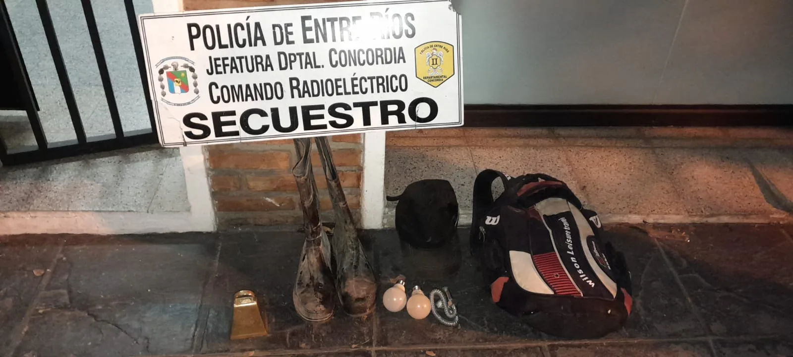 En la tarde, aproximadamente las 18hs, personal del Comando Radioeléctrico de la ciudad de Concordia, encontrándose de patrulla preventiva y llegados a la intersección de Calles Santa María de Oro y 25 de Mayo, toman la iniciativa de identificar un masculino que transitaba en forma sospechosa con una mochila semicerrada y en interior varios elementos de dudosa procedencia. Que en la entrevista el masculino exhibe las pertenencias y entre ellas se podía visualizar un cencerro de bronce color dorado; un par de botas de goma color negro talla 42 marca «Pampero»; dos focos blancos de 10w marca «king»; entre otros elementos. Seguidamente y mientras se los demoró en el lugar unos minutos, se realizaron consultas en la zona y se pudo determinar que en Calle Carriego y Entre Ríos, había una casa con la ventana abierta de fácil acceso desde la vereda, consultando al propietario si tenía algunos de estos elementos sobre la ventana y efectivamente, el damnificado manifestó que le faltaba un cencerro de bronce que tenía colgado en la pared muy cercano a la ventana.