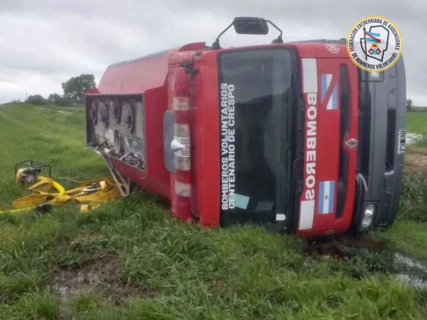En el día de hoy, durante el mediodía, uno de los vehículos cisterna de Bomberos voluntarios Centenario de Crespo, volcó sobre su lateral derecho cuando se dirigía a una granja avícola para abastecimiento, la cual se encontraba sin agua y sin energía eléctrica.