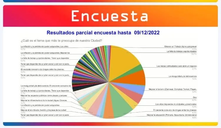 Entre las 4 preocupaciones más votadas se encuentran: la falta de trabajo; la inseguridad y la delincuencia; el creciente consumo de drogas entre los jóvenes; y la inflación y la pérdida de poder adquisitivo.