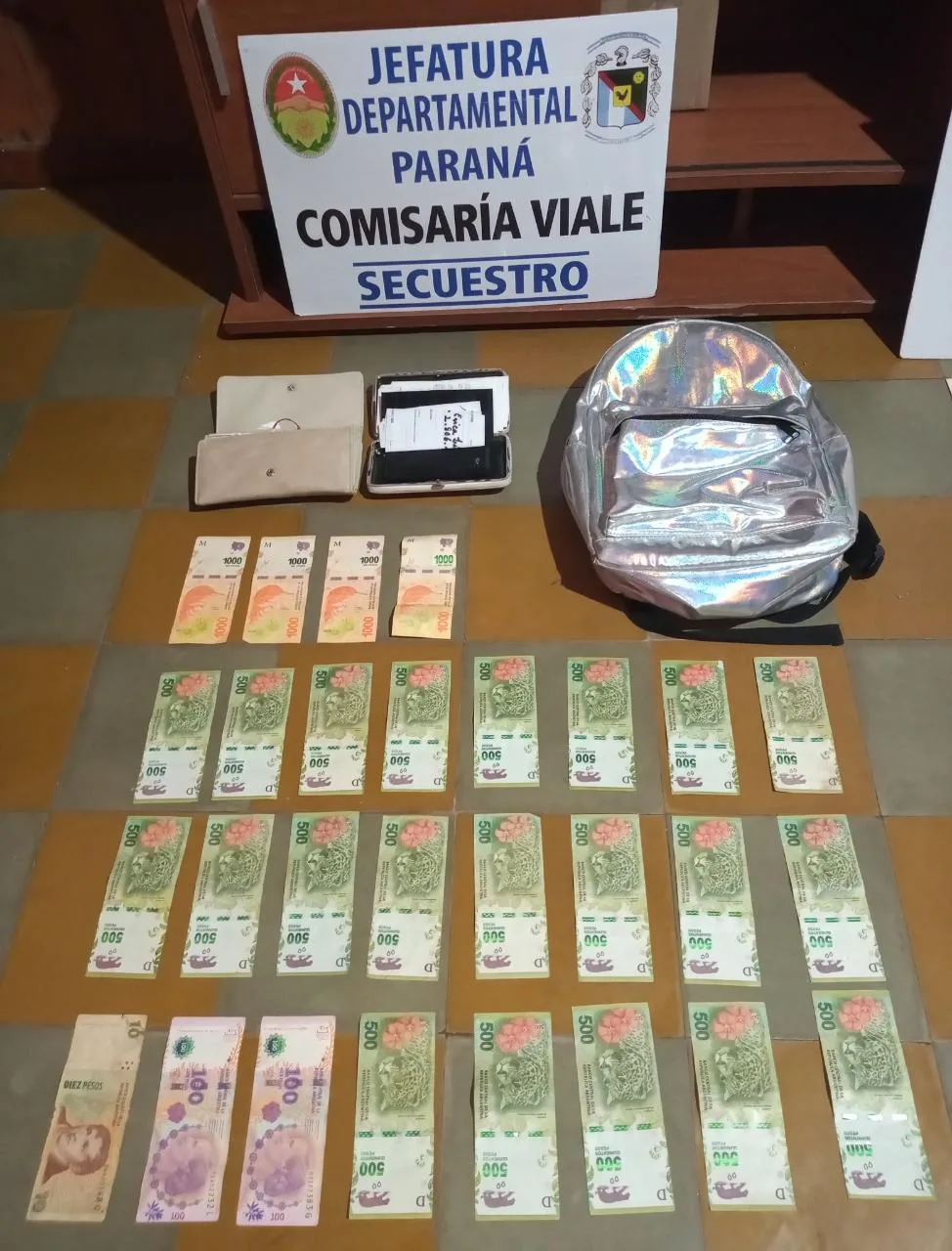 En la noche del sábado una mujer se comunica con Comisaria Viale informando que un joven en calle Salta había roto el vidrio del lado del conductor de una camioneta Toyota SW4, y sustrajo una mochila. Funcionarios de la dependencia que andaban de recorrida, logran demorar al autor del hecho en calle San Nicolás y Tratado del Pilar, sin la mochila, por lo que los policías realizan una búsqueda por la zona de la misma, encontrándola en el patio interno de una casa.