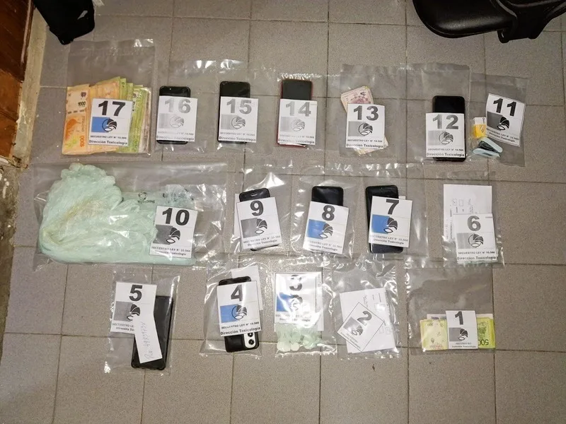El saldo de las cuatro requisas domiciliarias fue significativo: se incautaron 77 envoltorios de cocaína listos para su comercialización, aproximadamente 335.000 pesos en efectivo, nueve tabletas de clonazepam, una gran cantidad de bolsas de nylon tipo camiseta, nueve teléfonos celulares, una réplica de un arma 9mm y anotaciones de suma importancia para la causa. Tres personas mayores de edad fueron detenidas y alojadas en la sede de la Jefatura Departamental Diamante a disposición judicial.
