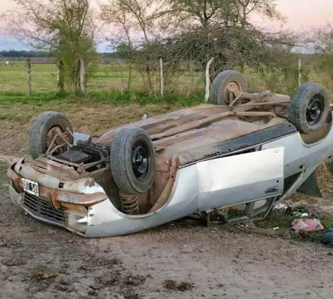 Un vehículo Peugeot 504, en el que se desplazaban cuatro personas, despistó y volcó por motivos que aún se investigan. El rodado terminó completamente invertido, con las cuatro ruedas hacia arriba, en una zona de difícil acceso.