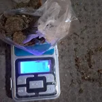 Durante el procedimiento, se efectuó un palpado preventivo de armas, conforme a protocolo. Como resultado, se detectó entre sus pertenencias un envoltorio de nylon que contenía sustancia vegetal. Tras realizar las pruebas de campo correspondientes, se confirmó que se trataba de marihuana.