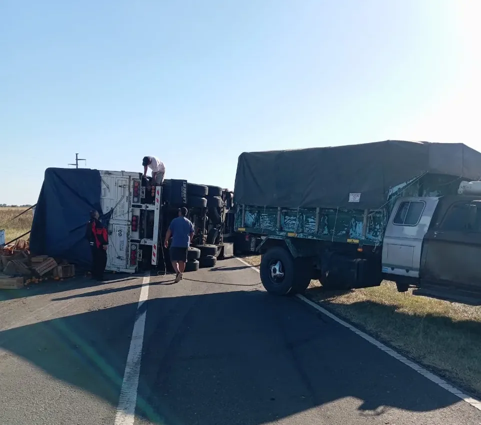 El siniestro vial ocurrió alrededor de las 17:40 horas, cuando por causas que se tratan de establecer el acoplado perdió la estabilidad y terminó volcado sobre la calzada. El camión que lo remolcaba no sufrió daños de consideración y permaneció en posición normal.