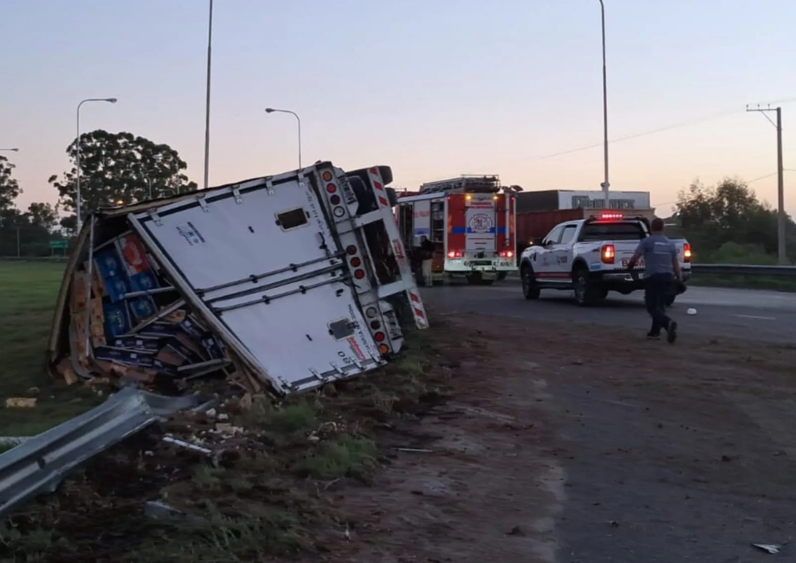 El protagonista del accidente fue un camión Iveco 420 con acoplado térmico, que circulaba en sentido sur-norte. Según relató el conductor, un joven de 32 años oriundo de la provincia de Misiones, una combinación de cansancio y un descuido momentáneo provocó que el vehículo se desviara hacia la banquina oeste, provocando el vuelco total.