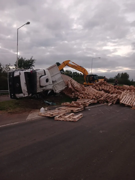El hecho fue constatado por personal policial de la Comisaría Frigorífico Yuquerí. Según se informó, el vehículo —un camión Volkswagen 17220 que transportaba pallets de madera descendía por el acceso de la Ruta 22 para incorporarse a la Autovía Artigas en sentido sur, cuando por causas que se investigan se produjo el vuelco.