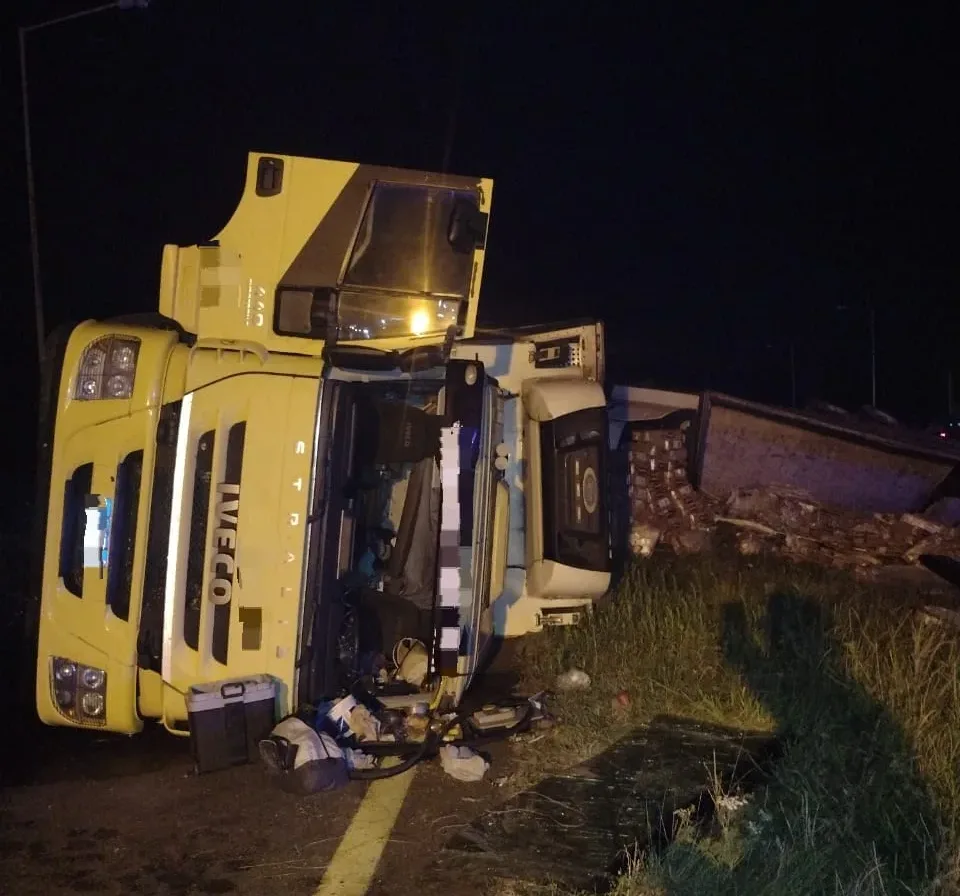 Concordia: Durante la madrugada de este sábado, personal de la Comisaría Colonia Yeruá intervino en un accidente de tránsito registrado en el kilómetro 244 de la Ruta Nacional 14, donde un camión Iveco 440, de color amarillo, protagonizó un violento vuelco mientras transportaba cajones de pollo congelado.