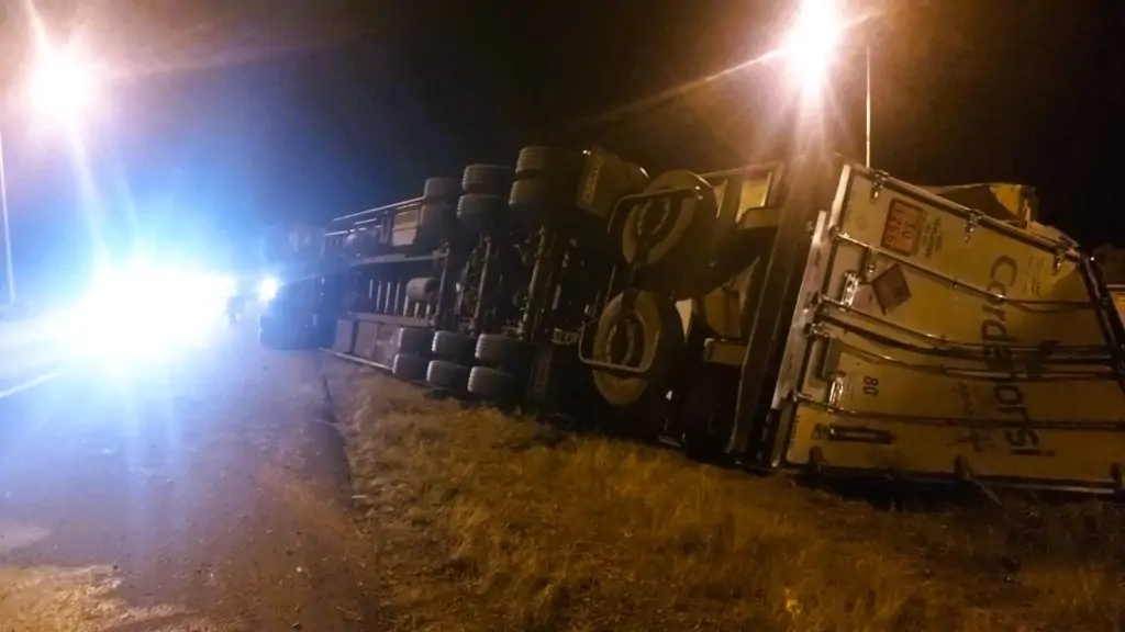 Este viernes a las 23:30 hs., la Comisaría Nº 20 La Alemana de la localidad de Chajarí informó sobre el vuelco de un camión marca Scania en el kilómetro 311 de la Ruta Nacional 14. El vehículo era conducido por un hombre de nacionalidad brasileña, proveniente de Santo Tomé, Corrientes, y con destino a Chile, transportando productos Natura.