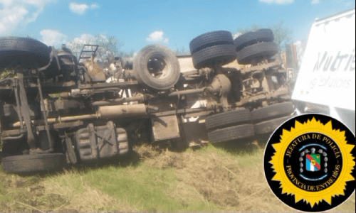 Aproximadamente a las 15:40 horas de ayer, un camión con acoplado perteneciente a la empresa Nutrien Ag Solutions Argentina S.A. volcó en la Ruta Provincial N° 6, frente a la entrada de la comuna de Durazno. El vehículo de gran porte era conducido por un ciudadano de Villaguay.