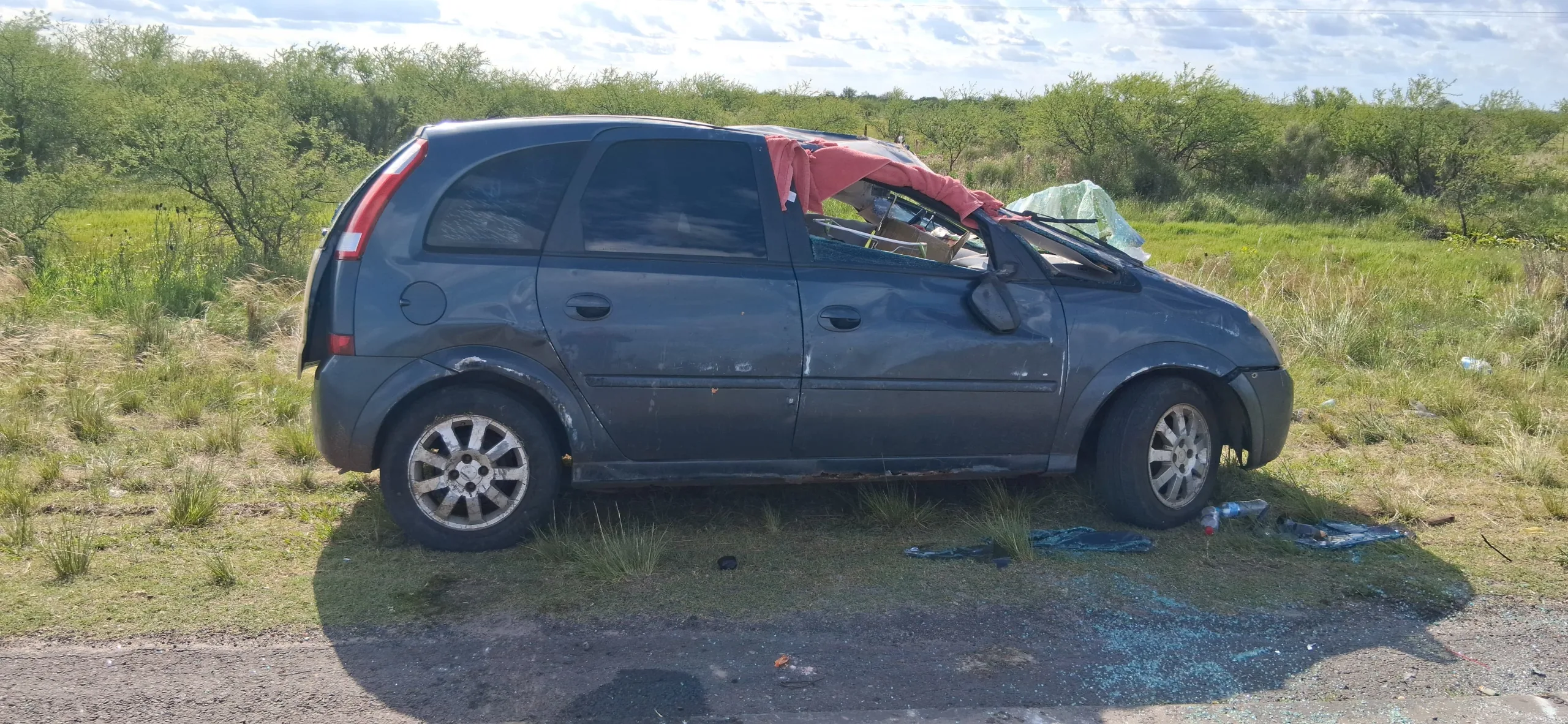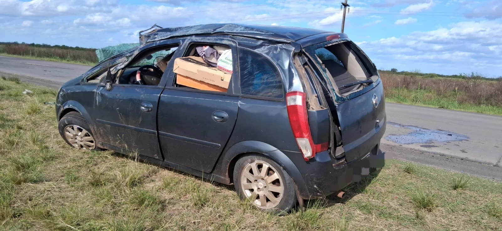 Por causas que aún se investigan, un automóvil Chevrolet Meriva perdió el control y volcó a un costado de la calzada, quedando con daños materiales de consideración.