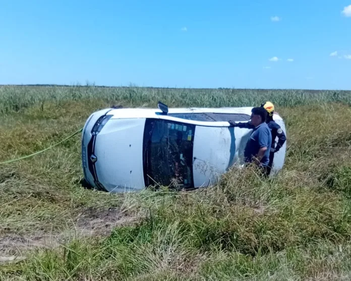 Pasadas las 11:38 horas, una dotación del Destacamento Uno Médanos, a bordo del Móvil N°8, acudió al llamado por el vuelco de un vehículo Renault Logan en el kilómetro 209 de la Ruta Nacional N°12.